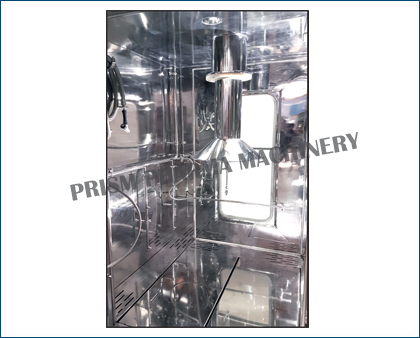 Bin wash automatically as per sets cycles. There are nos. of spraying nozzles for washing at all corners & all side walls for outer washing. Top mounting spraying nozzle is fitted with telescopic pneumatic cylinder to wash inner surface of the bin, Inner washing nozzle move upward & downward during washing for completely washing of bin. The cabinet is having drain pot with recirculation of water connection with pump if required then it can be recalculated. After complete washing cycles then bin is dry by passed filter hot air circulation by air handling unit. After drying of Bin on set temperature then released for new batch safe storage.
